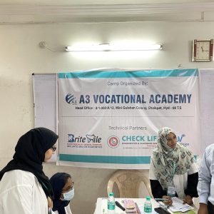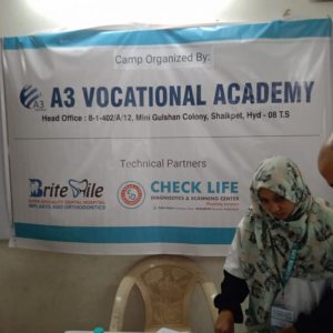 Hosted Mrs Maria Tabbasum, Director, Madina High School Visit to A3 Vocational Academy by Janab Sadath ullah Hussiani- Ameer Jamat -e -Islami Hind Presentation of Academy to Janab Abdur Rahman Shamsi (Qatar) Stall set up at Conference by SIO in exhibition ground, Nampally Medical camp organized in support of Technical partners, Checklife speciality clinics, Britesmile Dental Hospital, Unique vision Medical camp organized in support of Technical partners, Checklife speciality clinics, Britesmile Dental Hospital, Unique vision